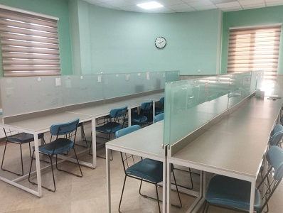 کتابخانه دارای 2 اتاق مطالعه گروهی ویژه خانم ها (8صندلی) و آقایان (6صندلی) می باشد.